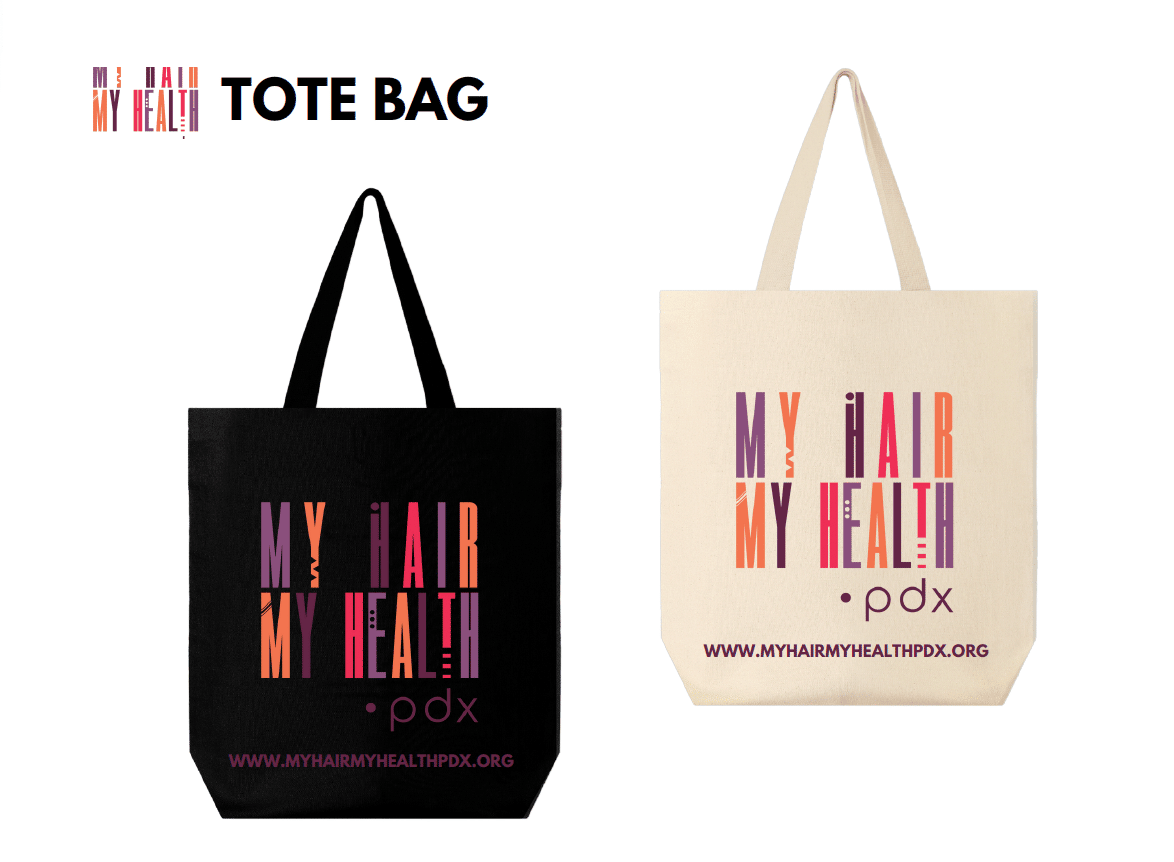 As part of our End-of-Year Giving Campaign, we’re offering a special tote and t-shirt combo (while supplies last) for every donation of $50 or more made through our website. Once you have made your donation please send us a screenshot of your confirmation page to hello@myhairmyhealthpdx.org so we can arrange shipping details!